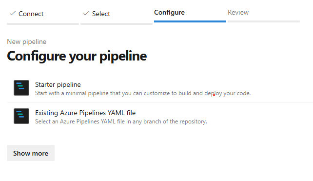 Now that we have our project all set up, we need to create the pipeline that will execute the action to restore the packages, then push them to the NuGet Feed. You have the option to either create a new pipeline yaml and selecting the file as existing during setup, or updating the starter pipeline yaml that is provided.